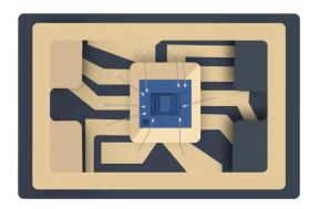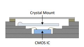 使用硅MEMS技術可以在同一芯片上制造定時陶瓷諧振器和溫度傳感器。使用傳統(tǒng)的石英晶體組裝工藝不可能同時振制造諧振器和溫度傳感器。石英TCXO的封裝,材料和性能限制需要晶體和溫度傳感器之間的大位移。石英傳感器需要對石英坯料進行細致的加工,拋光和修整,以在整個溫度范圍內實現(xiàn)所需的頻率穩(wěn)定性,而CMOS IC上的振蕩器電路,溫度傳感器和補償電路使用傳統(tǒng)的硅微加工技術制造。將這兩個基于兩種不同材料系統(tǒng)的組件集成在一起會帶來許多挑戰(zhàn)。石英換能器通常使用導電粘合劑安裝在陶瓷封裝中,使得其用環(huán)境氮氣懸浮在封裝腔中。晶體通過鎢通孔和金線鍵合電連接到CMOS IC,CMOS IC安裝在封裝的底部。圖3a顯示了一體化石英晶體振蕩器陶瓷封裝的橫截面示意圖3b頂蓋上安裝有石英晶體的去蓋部分和3c與石英晶體相同的部分移除后,顯示CMOS IC,溫度傳感器,振蕩器和補償電路安裝在封裝底座上的晶體下方。