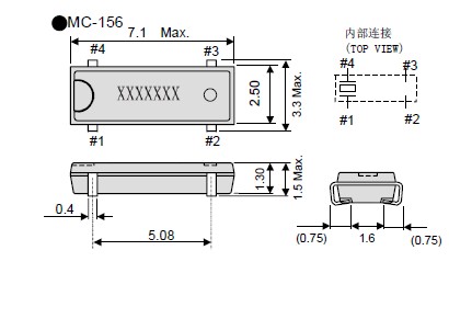 電話機表晶MC-156,石英水晶振子,石英晶體諧振器,“MC-156 32.7680KA-A0:ROHS”表晶32.768KHZ系列晶振,7.1*3.3mm貼片小尺寸晶振,超小型,薄型,質地輕的表面貼片音叉型晶體諧振器,手機晶體,產品體積小,特別適用于各種小巧的便攜式消費電子數碼產品,在移動通信領域得到了廣泛的應用,晶振產品本身可發揮優良的電氣特性,滿足無鉛焊接的高溫回流溫度曲線要求.