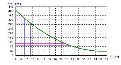 在圖中, CL=24 pF 時(shí)的頻率敏感度是10 ppm/pF, 及CL=10 pF時(shí)的頻率敏感度是20 ppm/pF. 在并聯(lián)線路中,負(fù)載電容越小, 頻率對(duì)負(fù)載電容變化的敏感度越高.相反的,負(fù)載電容越大,頻率對(duì)負(fù)載電容變化的敏感度越低.這就是石英晶體共振子用于VCXO線路上時(shí), 線路設(shè)計(jì)上會(huì)選用較小負(fù)載電容.反之,在要求較準(zhǔn)確的頻率信號(hào)時(shí),路設(shè)計(jì)上會(huì)選用較高的負(fù)載電容.