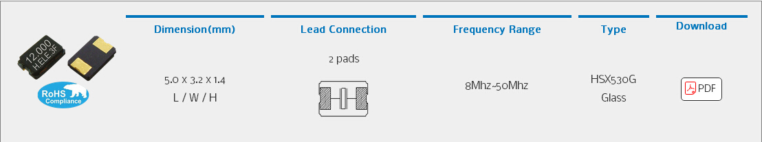 HSX530G諧振器,臺灣進口石英晶體諧振器,HELE晶振小型表面貼片晶振型,是標準的石英晶體諧振器,適用于寬溫范圍的電子數(shù)碼產(chǎn)品,家電電器,播放器,單片機等領域.可對應8.000MHz以上的頻率,在電子數(shù)碼產(chǎn)品,以及家電相關電器領域里面發(fā)揮優(yōu)良的電氣特性,滿足無鉛焊接的回流溫度曲線要求.