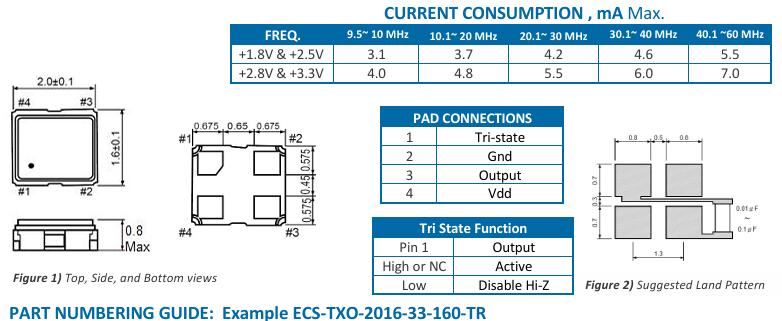 ECS-TXO-2016-33-250-TR晶振,伊西斯ECS溫補晶振,石英晶體振蕩器