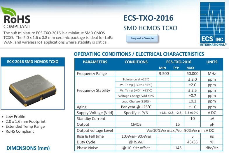 | 型號 | ECS-TXO-2016 |