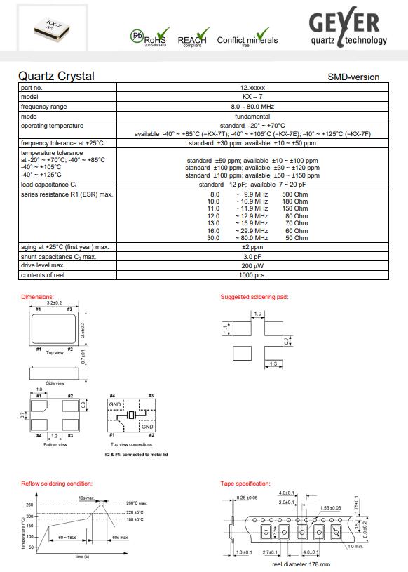 更多>>12.60233 KX-7T 3225 25M 12PF 20PP 丹麥格耶GEYER晶振