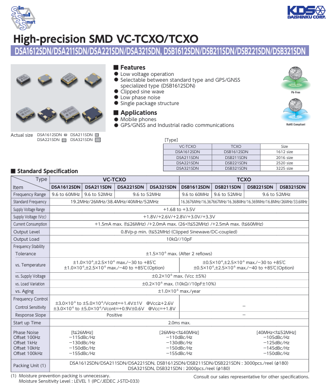 特征 低電壓作削波正弦波低相位噪聲單封裝結構