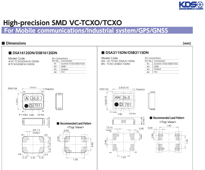 日本KDS晶振,大真空溫補晶振,定位GPS晶振石英晶體振蕩器