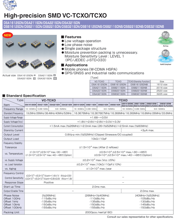 DSB211SDN削波正弦波晶振,移動電話有源晶振聲表面諧振器