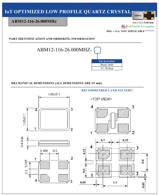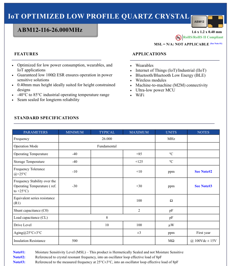 晶振撬動智能新時代當(dāng)可穿戴設(shè)備精準(zhǔn)監(jiān)測健康數(shù)據(jù),當(dāng)物聯(lián)網(wǎng)設(shè)備實現(xiàn)遠(yuǎn)程智能控制,當(dāng)藍(lán)牙模塊無縫傳輸信息,這些智能場景的背后,都離不開一個核心元器件——晶振.美國艾博康(Abracon晶振)推出的ABM12-116-26.000MHZ-T3晶振,以其卓越性能成為低功耗智能設(shè)備的“心臟”,彰顯著方寸之間的科技力量.