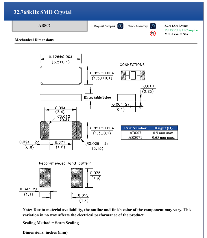 更多>>ABS07-32.768KHZ-T艾博康ABRACON進口晶振3215 32.768K 12.5PF
