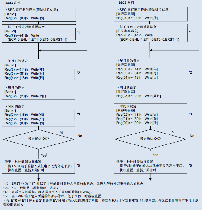 下文詳細說明使用上述兩種對時方法相關的寄存器,重置的動作及設定例.使用上述方法之前,務必先從外部輸入已同步的時間信息.