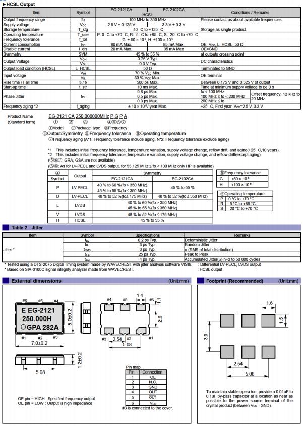 藍牙音響差分晶振編碼Q3805CA10004200,愛普生公司是一家極其具有創新能力的知名制造商,并以創新的精神,多元化的思維,打造多樣性的創新,為廣大用戶以及供應開拓更多新型的產品,以獲得廣大用戶的全心全意支持以及信賴,使得愛普生公司能夠在電子行業走向更高的平臺,于是推出了EG-2121CA晶振,石英晶體振蕩器編碼Q3805CA10004200,頻率125.000000 MHz,輸出WaveLVDS,電源電壓2.38 ~ 2.62 V,尺寸(LxWxH)7.00 x 5.00 x 1.20 mm,操作溫度-5至+85°C,頻率公差±100ppm,額外的OptionsN /OSC TypeClock OSC,這是一款LVDS輸出晶振,具備高精度,低損耗,低抖動之特點,非常適合用于藍牙音響,電子設備,航空航天等領域。