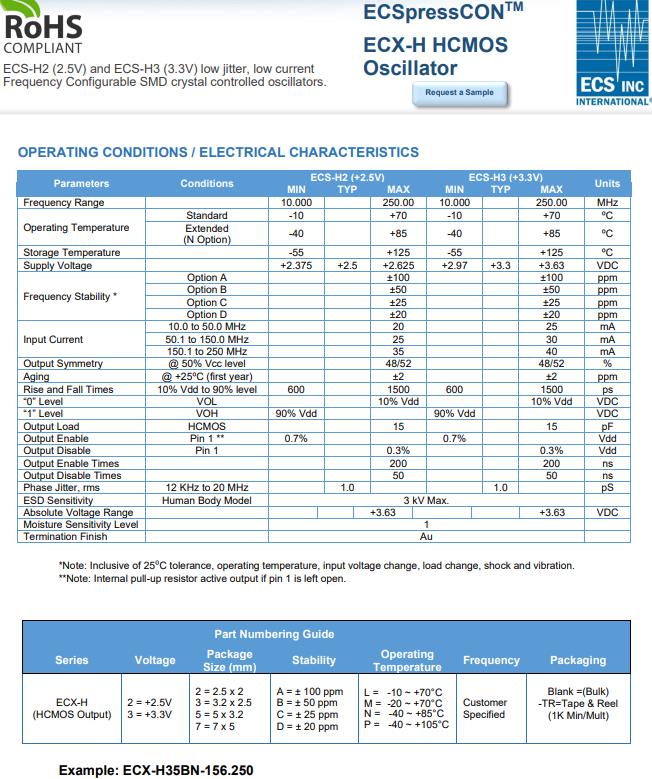 | ECX-H35BN-125.000 | ECS晶振 | ECSpressCON™ ECX-H | 125MHz | -40°C ~ 85°C |