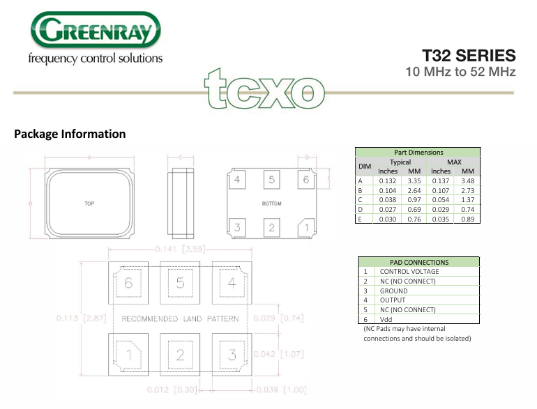歐美Greenray晶振,聲表面諧振器3225有源晶振,六腳TCXO溫補(bǔ)晶振T32-T56-C-B-SD-26.0MHz-E