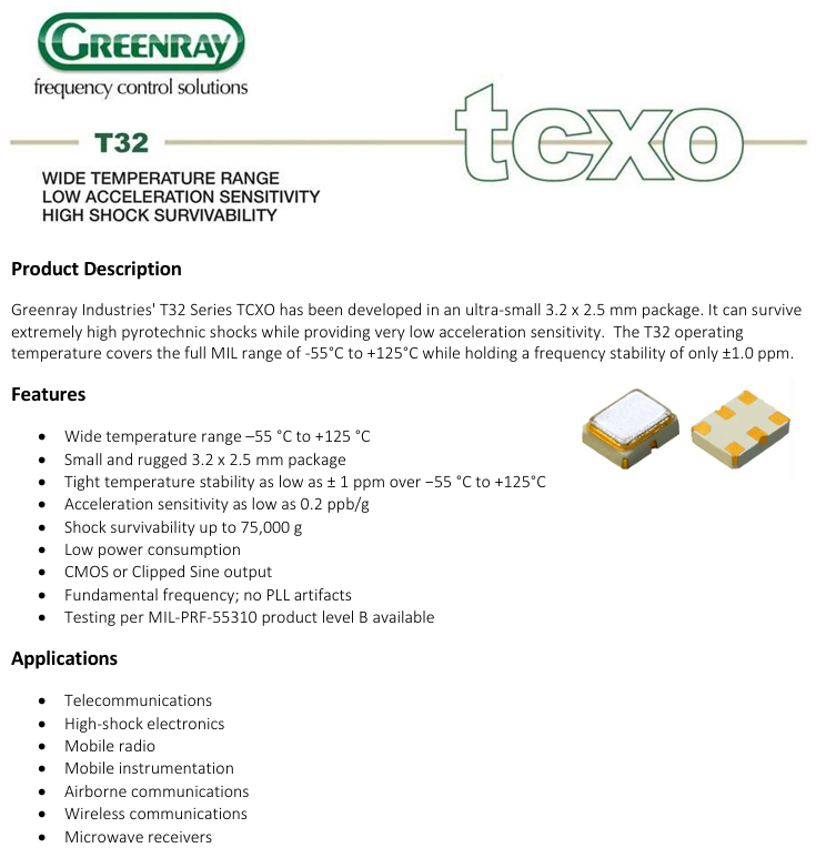 此文關(guān)鍵字: 美國Greenray格林雷晶振