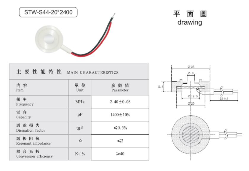3.霧化片尺寸:(Φ16,Φ20,Φ25,厚度:1.2±0.01mm)